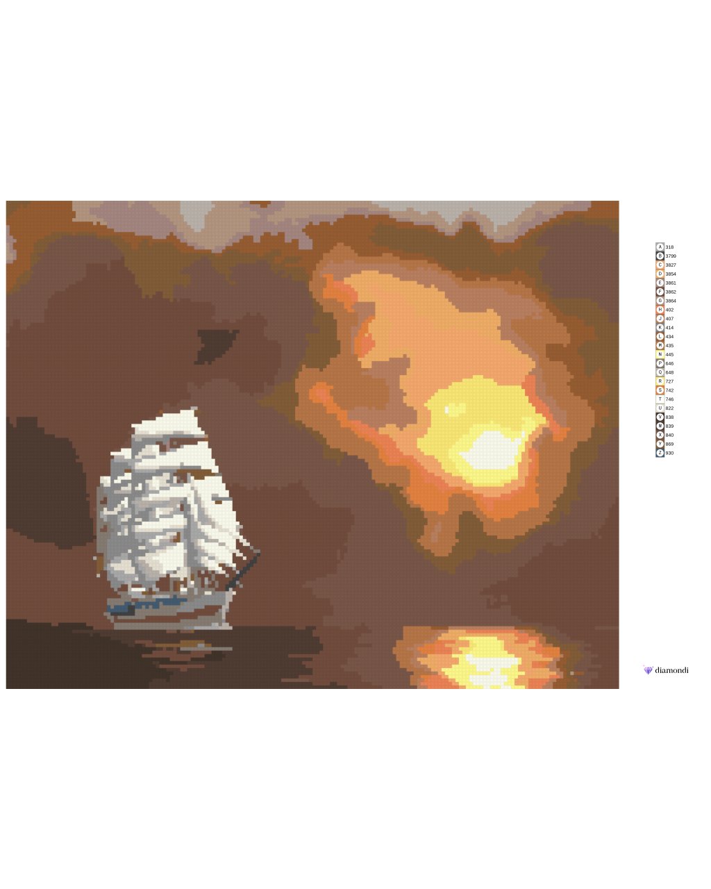 Haft diamentowy - BIAŁY ŻAGLOWIEC I SŁOŃCE ZA CHMURAMI (D. RUSTY RUST)