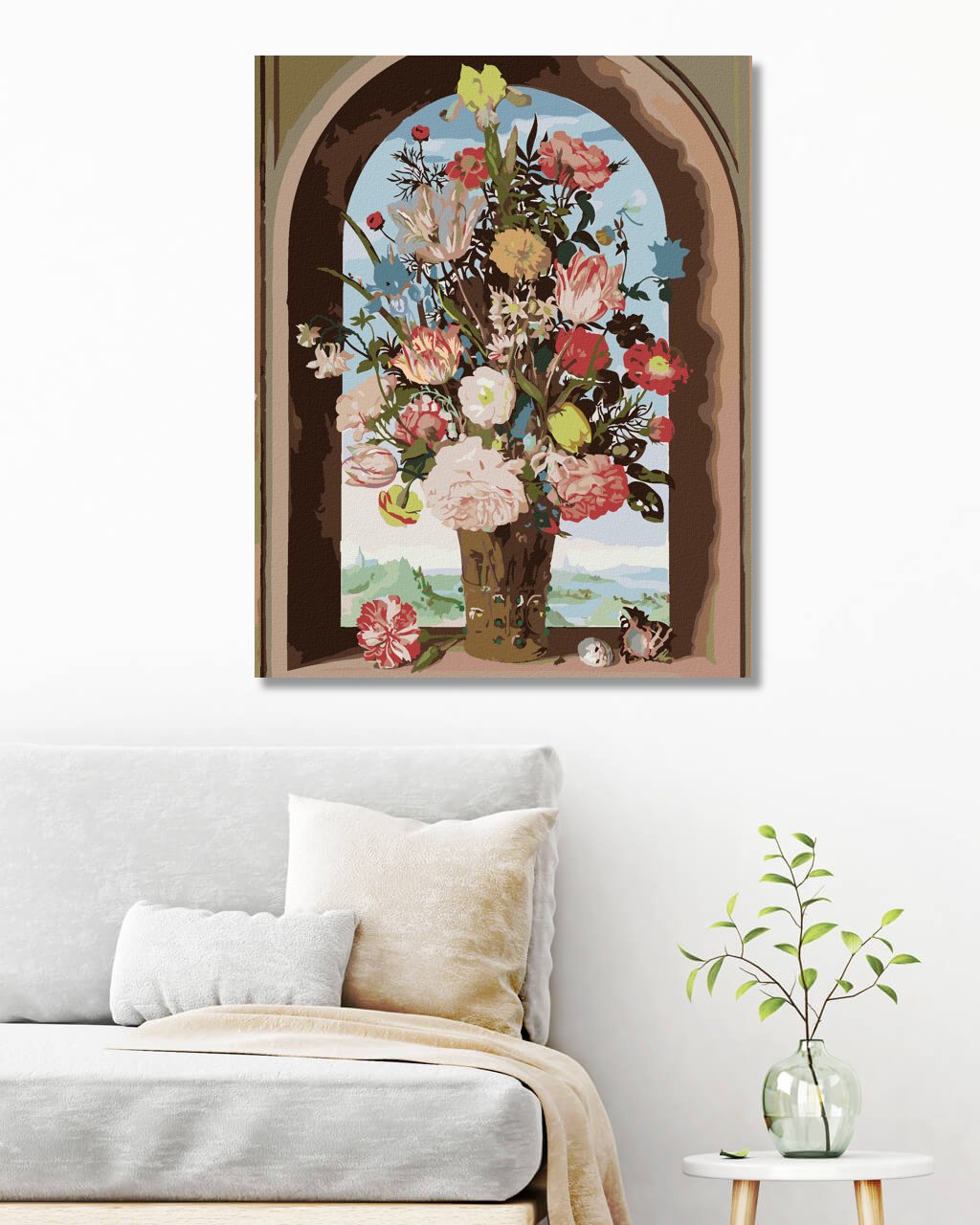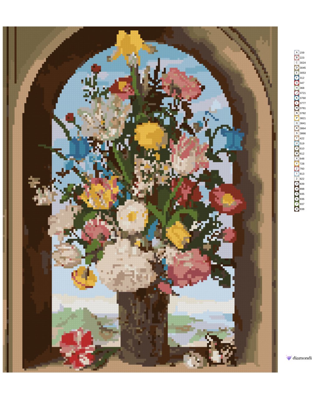 Haft diamentowy - BUKIET NA TLE SKLEPIONEGO OKNA (AMBROSIUS BOSSCHAERT)