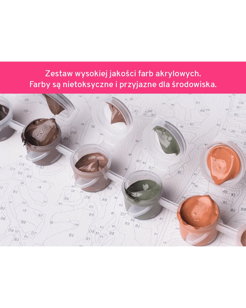 Wybierz motyw, poziom trudności, rozmiar płótna i ewentualnie inne akcesoria i zacznij malować według numerów.