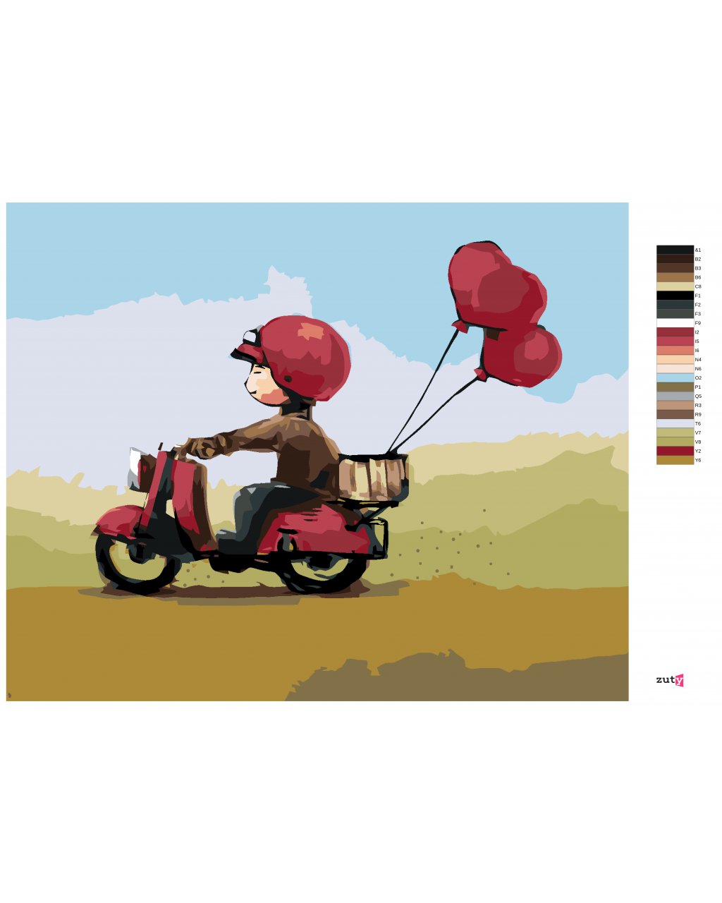 Malowanie po numerach - CHŁOPAK NA SKUTERZE Z BALONAMI