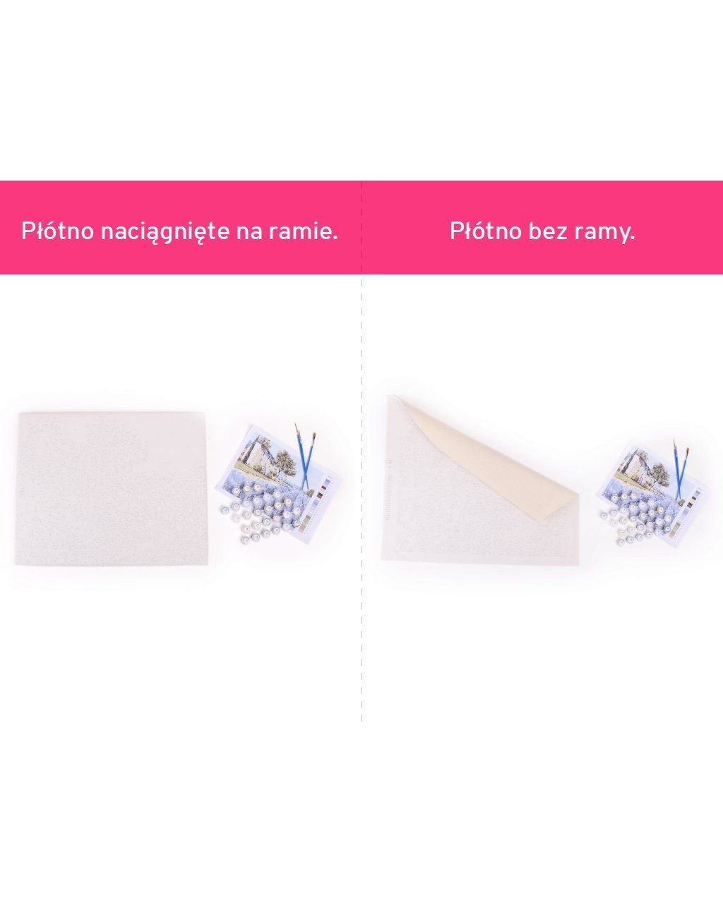 Wybierz motyw, poziom trudności, rozmiar płótna i ewentualnie inne akcesoria i zacznij malować według numerów.