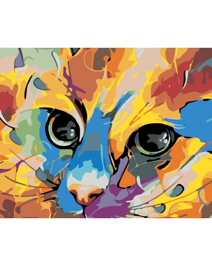 Malowanie po numerach - CZARNO-BIAŁY KOT I RÓŻOWE KWIATY