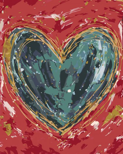 Malowanie po numerach - CZERWONE SERCE NA ZIELONYM TLE III (HALEY BUSH)