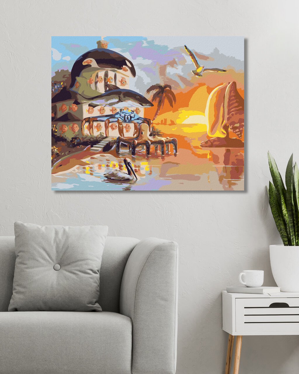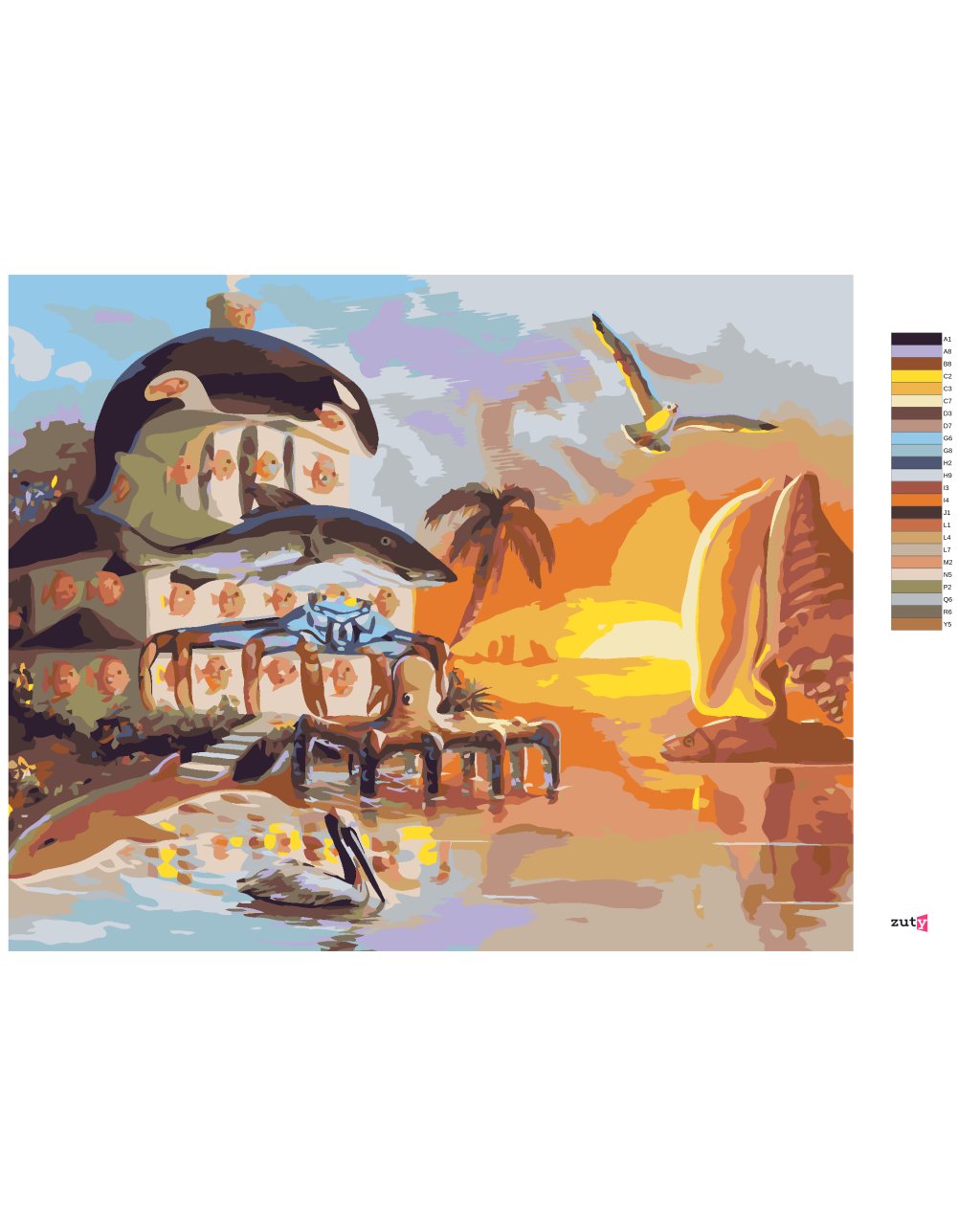 Malowanie po numerach - DOM I ŻAGLÓWKA I ZACHÓD SŁOŃCA (D. RUSTY RUST)