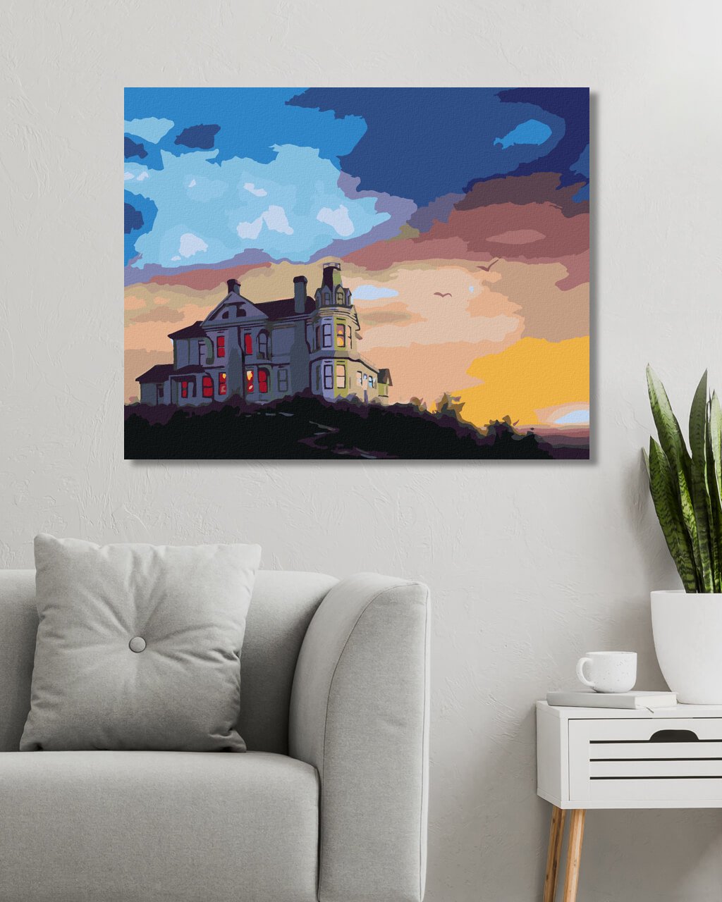 Malowanie po numerach - DWÓR I ZACHÓD SŁOŃCA (D. RUSTY RUST)