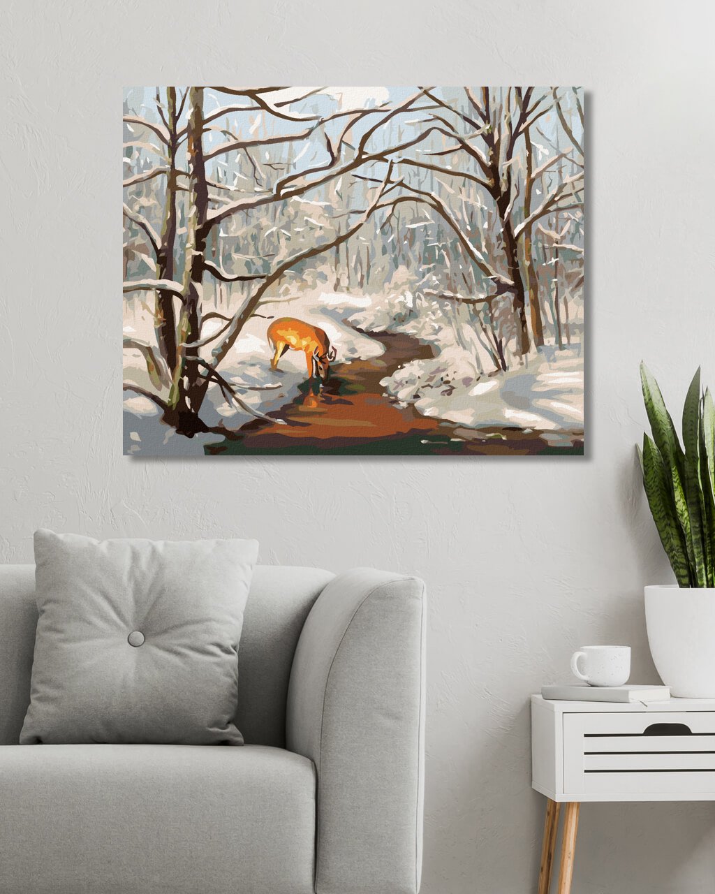 Malowanie po numerach - JELEŃ NAD RZEKĄ W ZIMOWYM LESIE (D. RUSTY RUST)