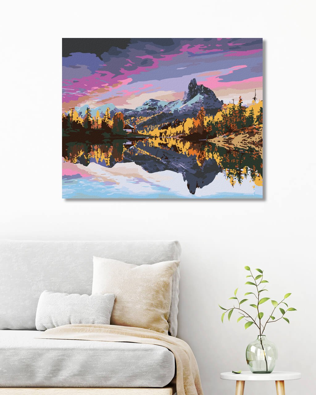 Malowanie po numerach - JESIENNY WIDOK NA JEZIORO FEDERA W DOLOMITACH