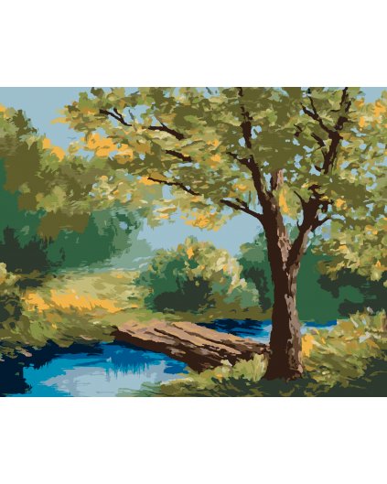 Malowanie po numerach - KWITNĄCE DRZEWA NA BRZEGU RZEKI