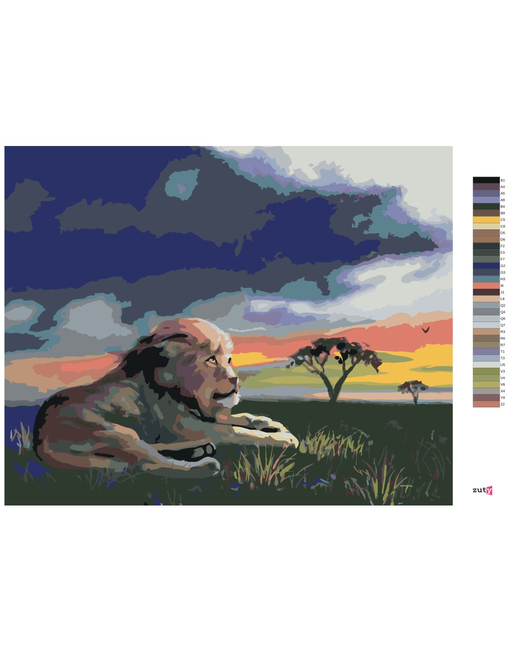 Malowanie po numerach - LEW NA TRAWIE O ZACHODZIE SŁOŃCA (D. RUSTY RUST)
