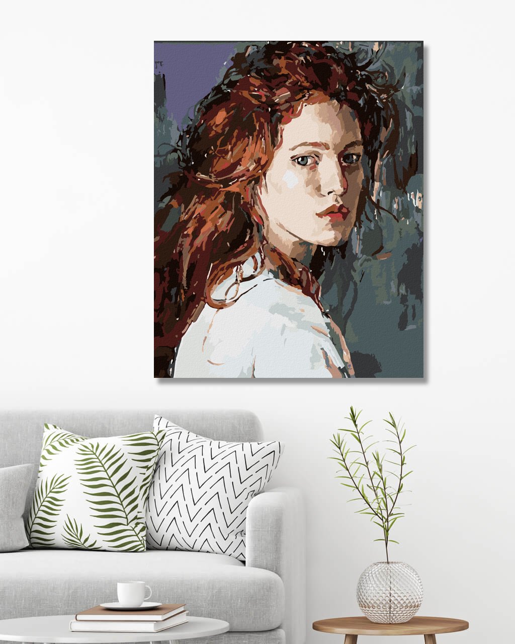 Malowanie po numerach - MALOWANA KOBIETA Z RUDYMI WŁOSAMI