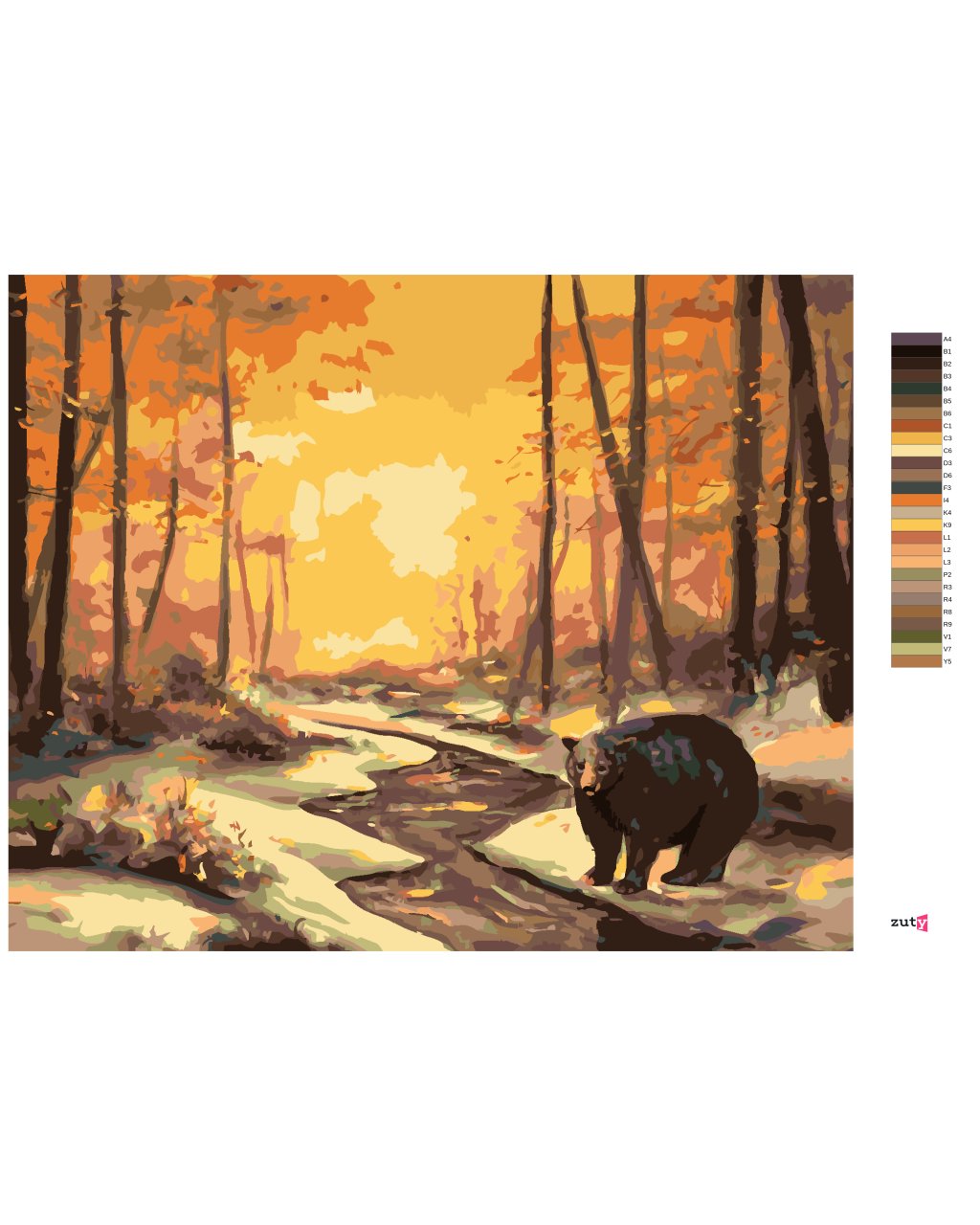 Malowanie po numerach - NIEDŹWIEDŹ NAD RZEKĄ W ZIMIE PRZY ZACHODZIE SŁOŃCA (D. RUSTY RUST)