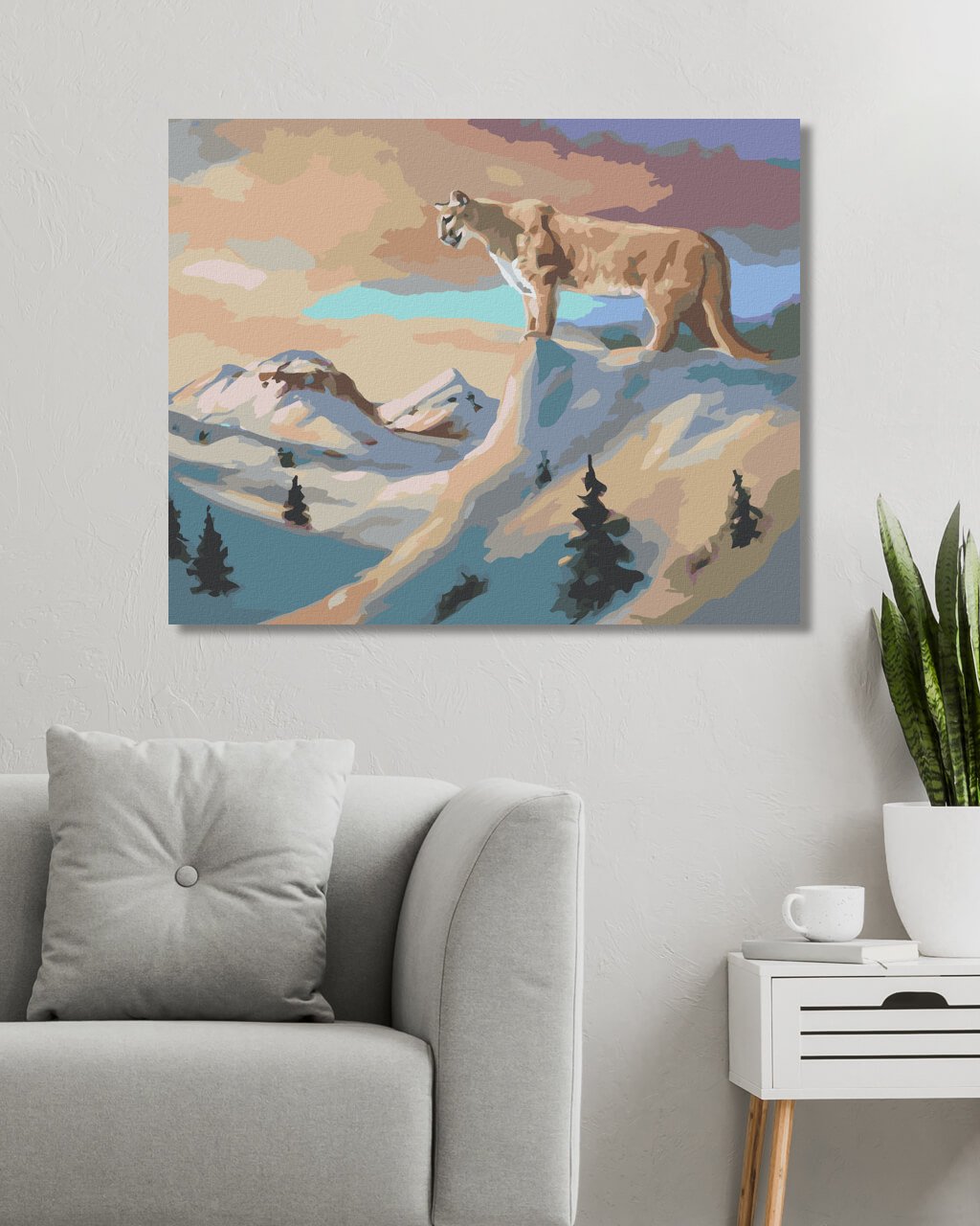 Malowanie po numerach - PUMA NA SKALE I OŚNIEŻONE GÓRY (D. RUSTY RUST)
