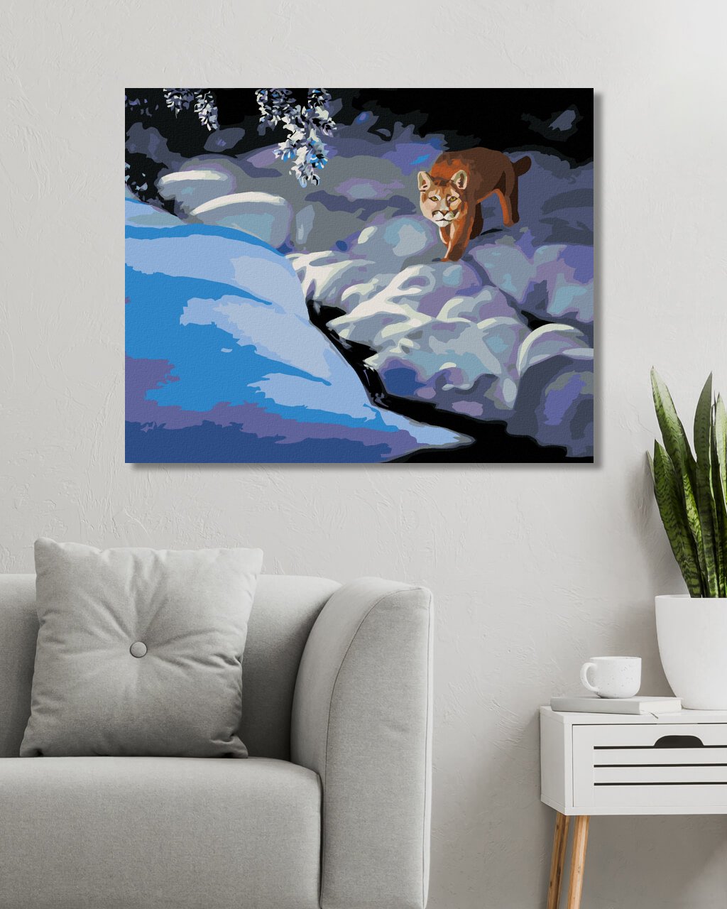Malowanie po numerach - PUMA W ŚNIEGU NOCĄ (D. RUSTY RUST)