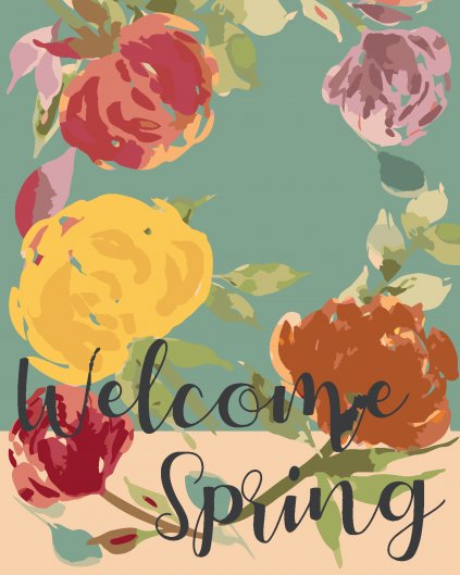 Malowanie po numerach - RÓŻOWE I FIOLETOWE KWIATY MIĘDZY LIŚCIAMI (ALEXANDRIA GILBERT)
