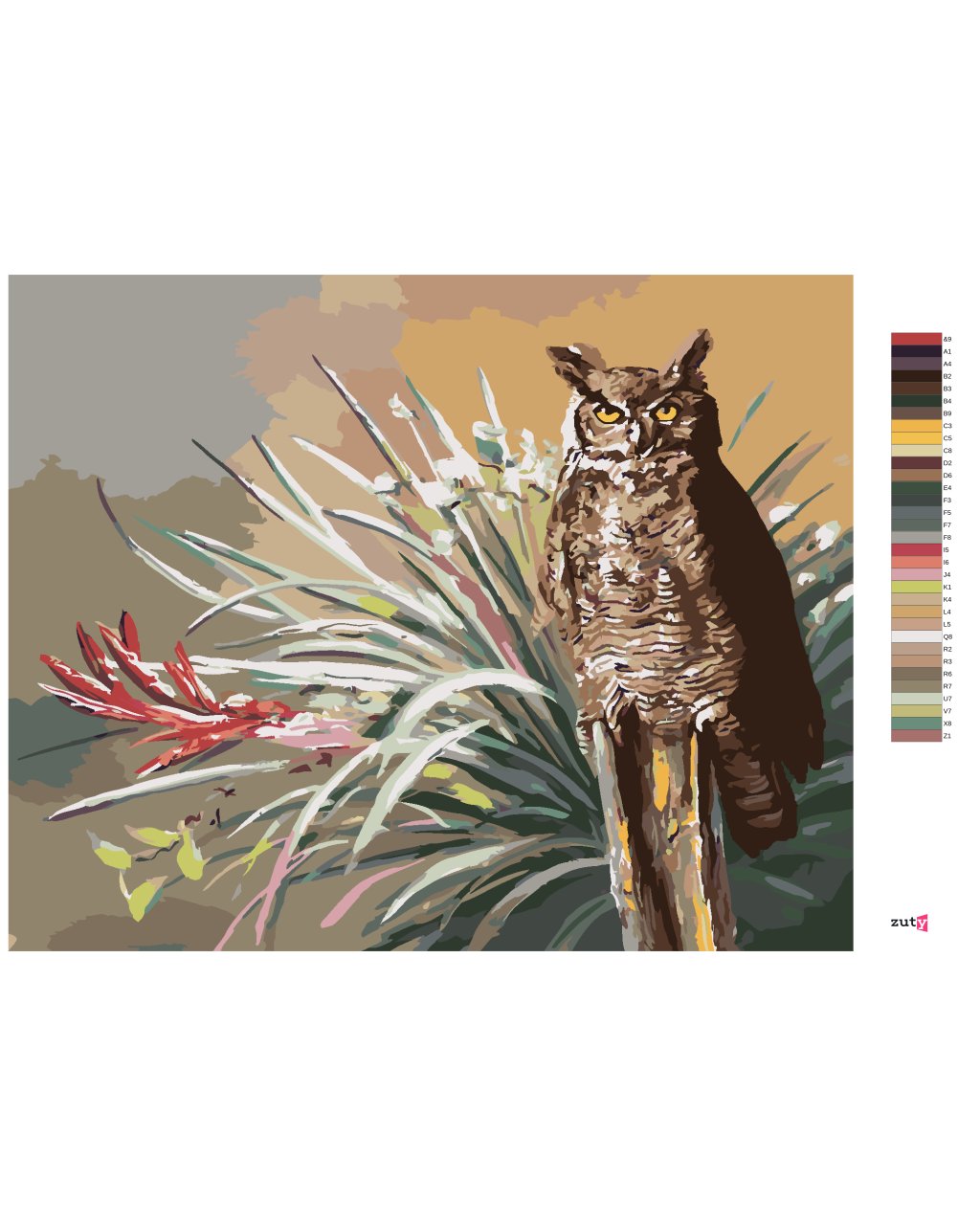 Malowanie po numerach - SOWA I LIŚCIE (D. RUSTY RUST)