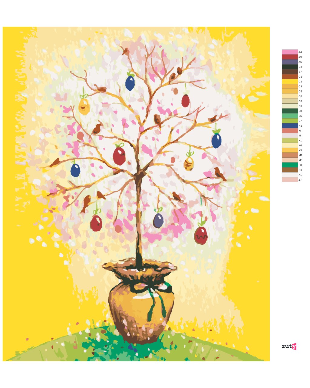 Malowanie po numerach - WIELKANOCNE DRZEWO Z JAJKAMI